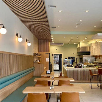 Studio Big NY brought a vibrant, modern edge to the aging Posh Pizza Restaurant in Queens, New York. The use of our panels; not only on the walls, but also the ceiling helped bring life to an otherwise out-dated pizzeria. Witness the revival of an iconic eatery through the lens of design innovation.