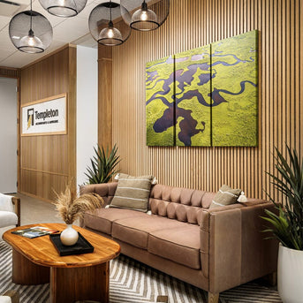 Interior design studio, ‘A. Jane Interiors’, beautifully elevates and soundproofs the offices of Templeton Accountants and Advisors. Our acoustic slat wood wall panels 'helped refresh the bare-bones office space whilst making an impactful statement within the parameters of the clients budget'.