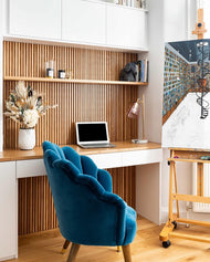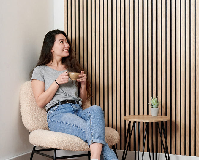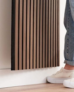 Transformez l'apparence de n'importe quel mur ou plafond avec nos panneaux acoustiques en bois. Chaque panneau est fabriqué à la main et comporte des lattes plaquées en bois et un feutre acoustique fabriqué à partir de matériaux recyclés. L'installation est rapide et simple.
